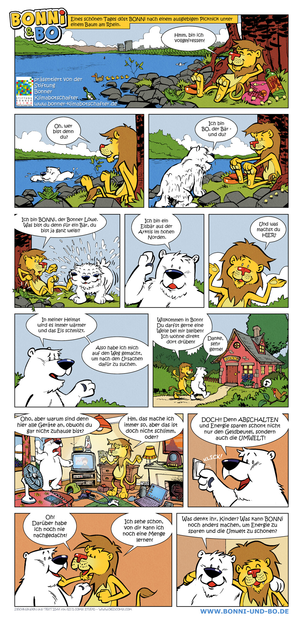 In diesem Comic lernen sich BONNi und BO kennen - und BONNi lernt etwas wichtiges über elektrische Geräte!