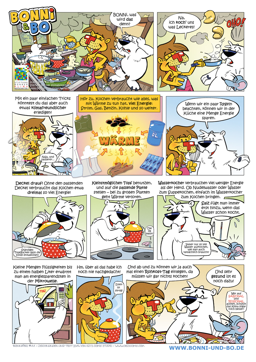 Jeden Tag kochen wir. Das kostet viel Energie. Wie wir Energie sparen können, das erklärt uns BO in diesem Comic!
